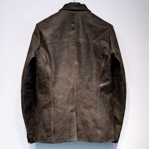 プルアップとは、オイル度レザーに比べて革の繊維内により多くのオイル分を含ませている為、革の裏側から指先で革を押すとその部分のオイルが繊維内を移動して表面の色味が明るく変化します。